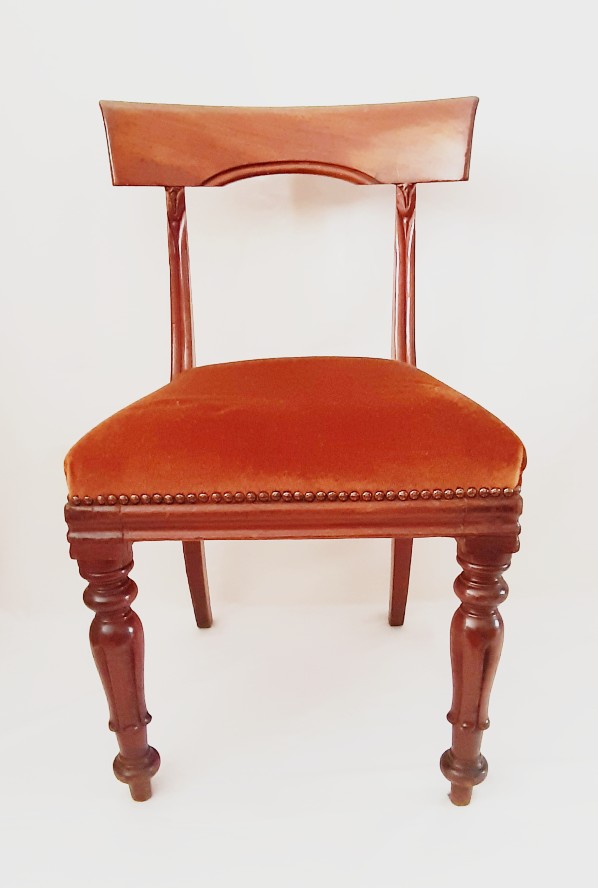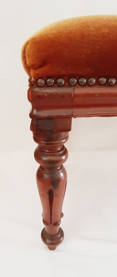 De gebloemde zitting van deze antieke Engelse bijzetstoel (notenhout) was vroeger van goudbruin fluweel. De door ons gerefurbishede stoel is in prima staat en erg handig wanneer je eens zitplaatsen tekort komt.