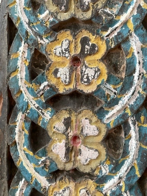 Bewerkt, houten ornament, polychroom, Zuid-Azië