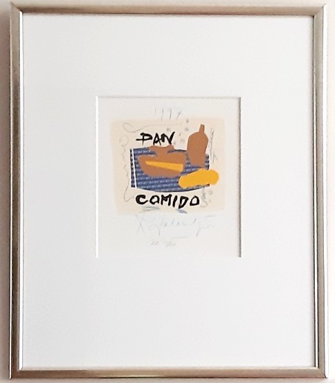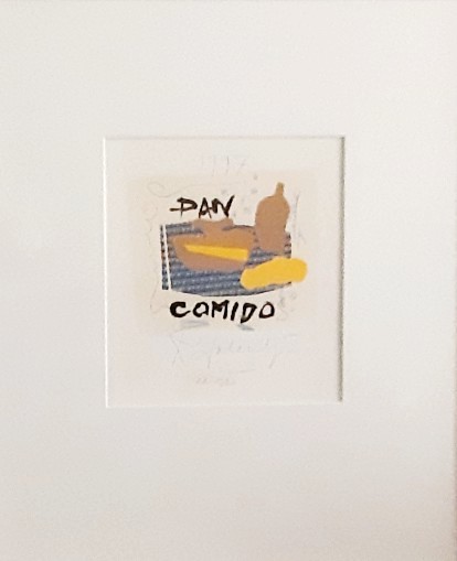 Lithografie van Kees Salentijn ‘Pan Comido’ (ofwel ‘appeltje – eitje’), gemengde techniek. Handgesigneerd 1997, genummerd 15/20.