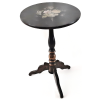 Ronde eettafel van prachtig notenhout. Hollandse Empire, dus uit het begin van de 19e eeuw. Met een strakke, zeskantige kolompoot uitlopend in een driespant. In goede staat, met enkele gebruikssporen.
