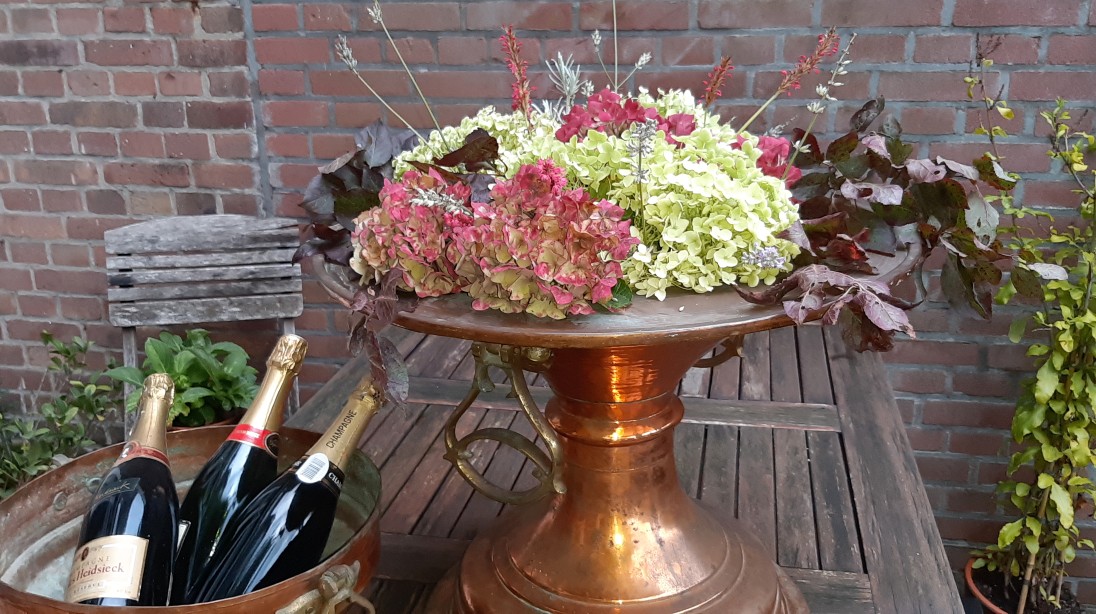 Vul de schaal (en deksel) met planten, zet deze op je terras of balkon, en je hebt (een) echte eyecatcher(s). Gevuld met bloemen, kerststuk of flessen wijn is het een opvallend item voor binnen of buiten. En je kunt er ook nog een vuurtje in stoken.