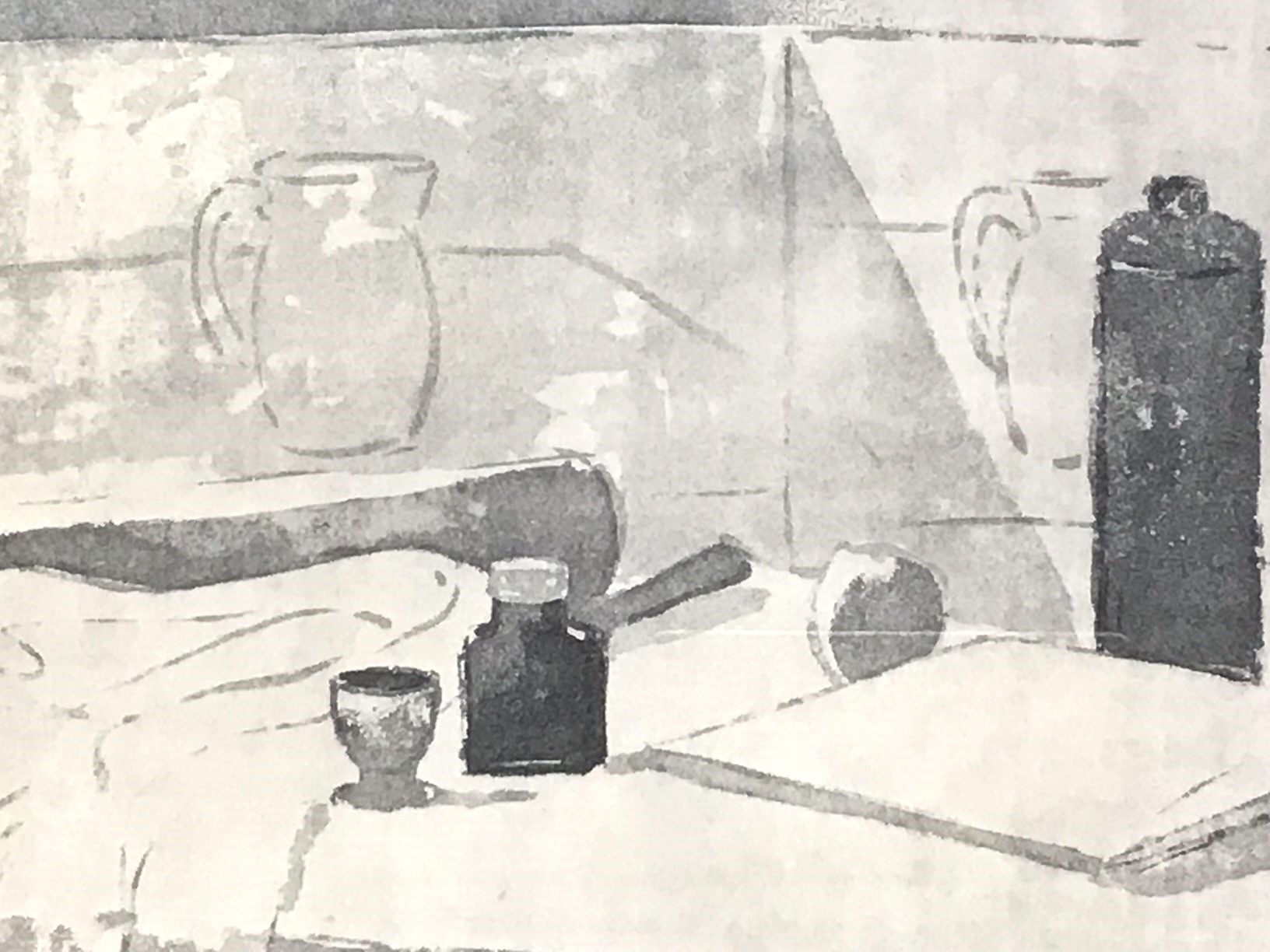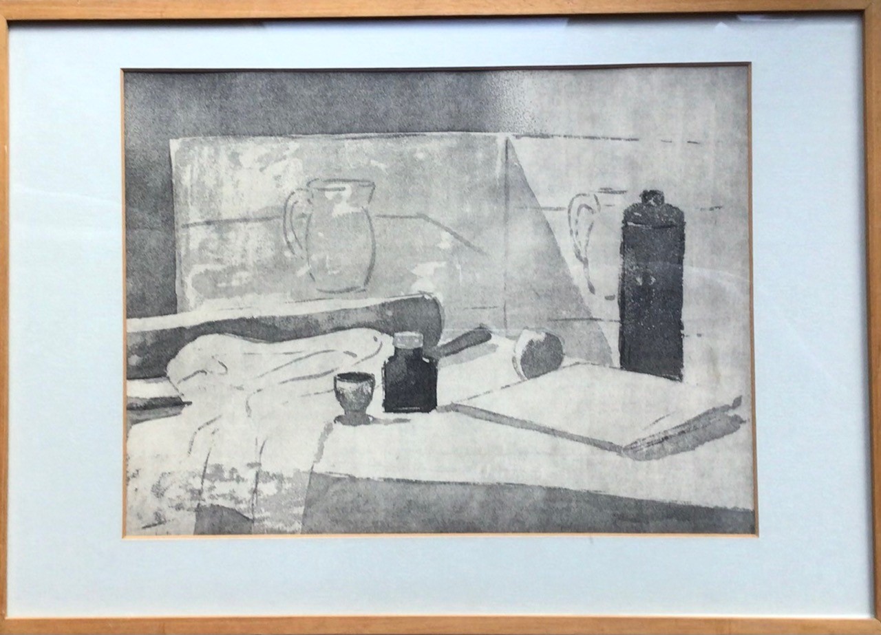 Ingetogen stilleven in zwart/wit van A. Bercht.
