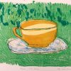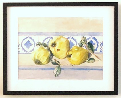 Stilleven met kweeperen, aquarel van J. Lucas, gedateerd 2002.